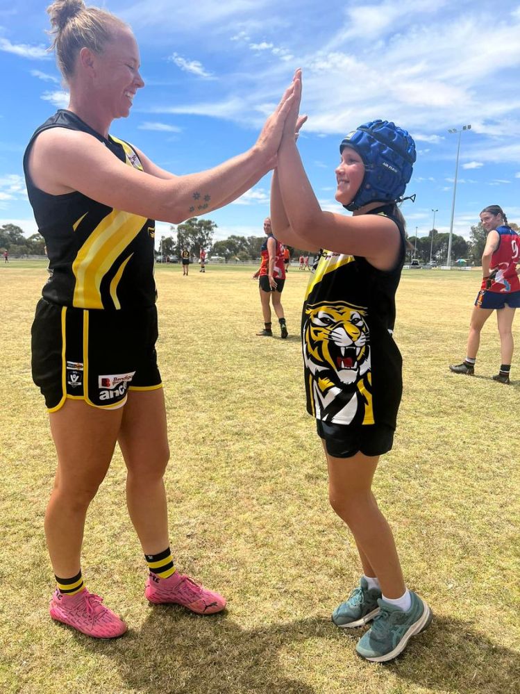 Before the game, Hay Lions Juniors had the privilege of participating in a clinic hosted by none other than Courtney Wakefield from Richmond Tigers. A golden opportunity to learn from one of the greatest in the AFLW.
